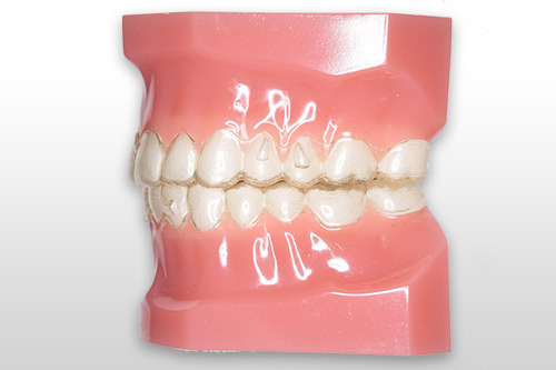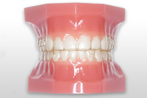 歯型から複数枚のマウスピースを作り、2~3週間毎に新しいマウスピースに付け替えることで歯を動かしていく治療法です。